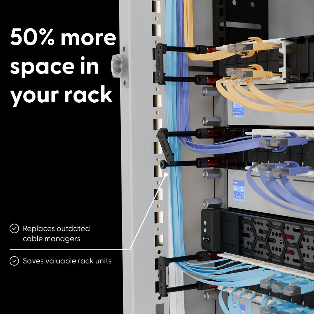 Replace traditional cable managers and free up to 50% rack space.